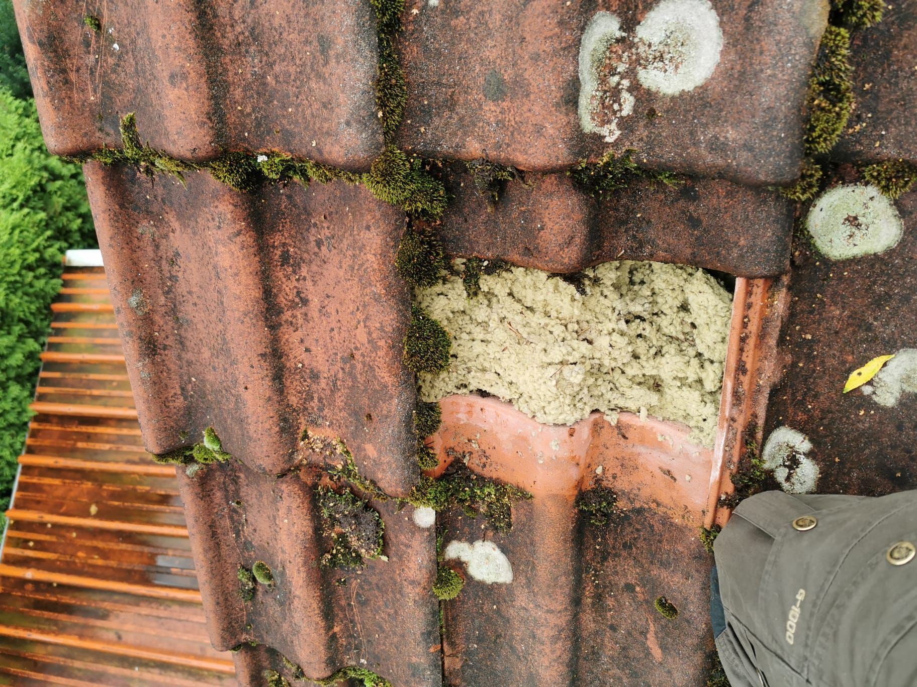 - Beschädigungen am Dach, herausragende oder herausgezogene Dämmwolle.